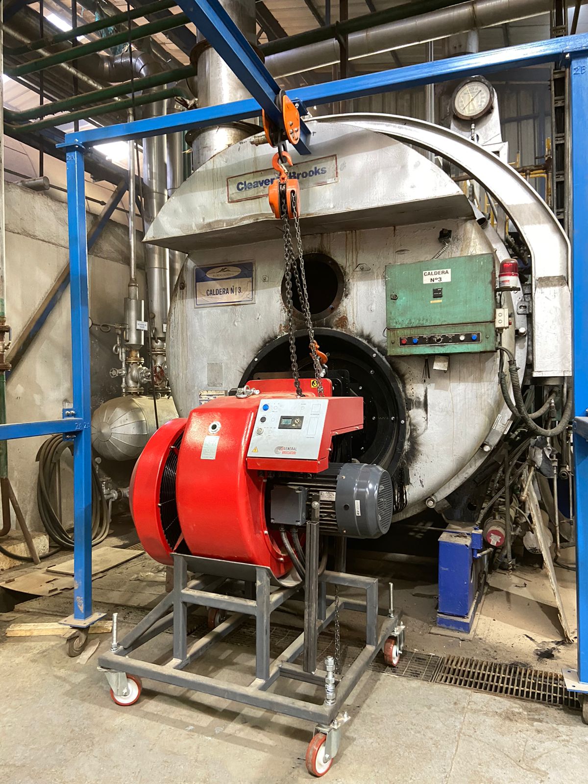 Instalación de quemador en caldera Cleaver Broks.